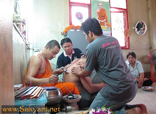 พระอาจารย์ได้ทำการเป่ามนต์คาถาลงไปที่รอยสักยนต์